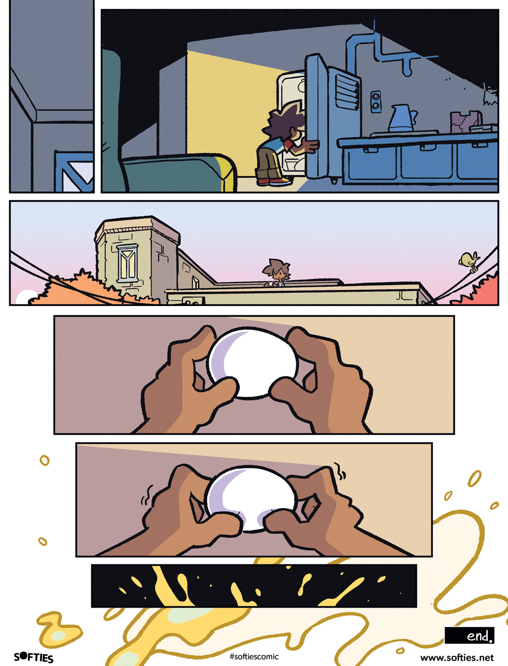 This comic’s color is provided by GJ Pelczar! Special thanks to my friend Cassie for sacrificing a single egg so I could have drawing reference. 🫡